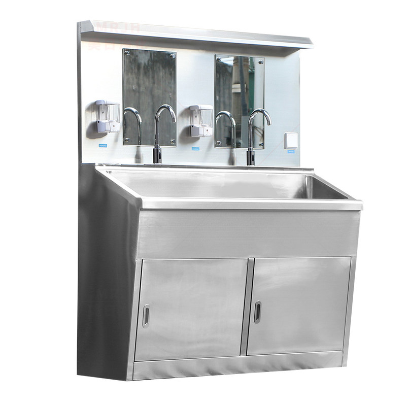 Lavabo per lavaggio a mano personalizzabile per due persone in acciaio inossidabile 304 per pulizia e disinfezione