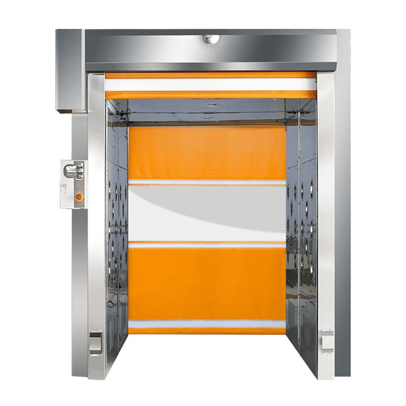 La doccia d'aria per merci a porta girevole rapida è un sistema di decontaminazione avanzato progettato per zone di ingresso/uscita di sale pulita con traffico elevato che gestiscono merci sfuse.integra porte a rotolamento rapido in acciaio inossidabile, automazione dei sensori radar e componenti resistenti al vento certificati in Germania per eliminare la contaminazione incrociata tra aree di alta/bassa pulizia.e industrie manifatturiere di precisione, le sue caratteristiche principali sono: