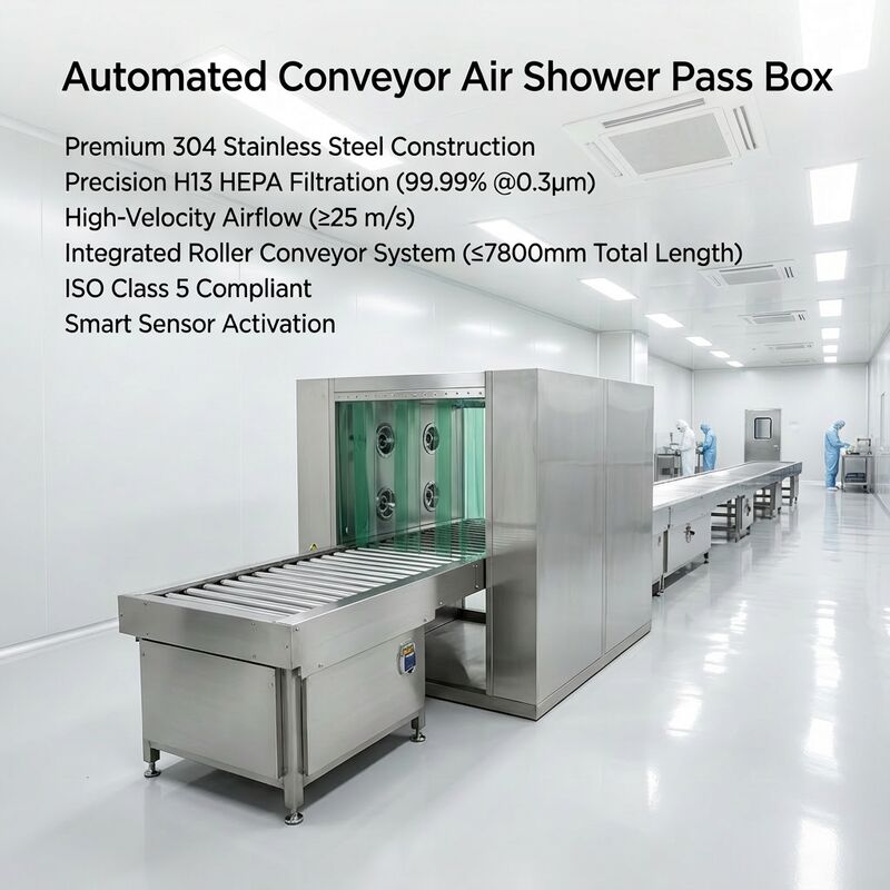 Convogliatore a rulli integrato e sistema di doccia ad aria HEPA.