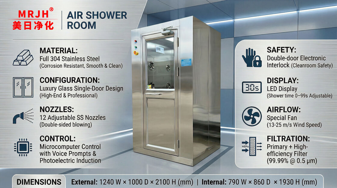 La doccia d'aria è un sistema critico di decontaminazione del personale progettato per le zone di ingresso/uscita delle sale pulite, garantendo la conformità alle norme ISO 14644-1.elettronica, e la ricerca biomedica, integracostruzione completa in acciaio inossidabile 304,porta singola di lusso con finestra di vetro, edoccia d'aria a doppio lato con 36 ugelli regolabili in acciaio inossidabileper la rapida rimozione di particolato, dotato di un sistema di controllo microcomputer, di un blocco elettronico a doppia porta efiltrazione tripla (3 pre-filtri + 3 filtri HEPA), garantisce un funzionamento privo di contaminazione conVelocità del vento da ugello 13 25 m/s- eConsumo di potenza totale < 4,5 kW.